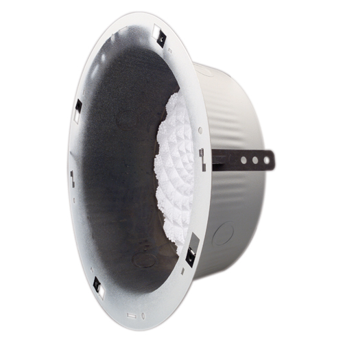 The RE84 Ceiling Speaker Enclosureis a protective enclosure for an 8" speaker, designed for recessed installations, and for use with any of the Bogen ceil-ing grilles. One-piece steel construction includes a mounting ring and a foam insert to reduce metallic resonance. The RE84 is finished in rust-resistant primer and is tapered for easy stacking. UL approved.
